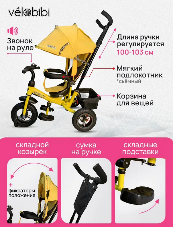 ArrayВелосипед трёхколесный с ручкой КОМЕТА (колеса надув. 10"/8" корзина) желтый (арт. ВЛ-5062)