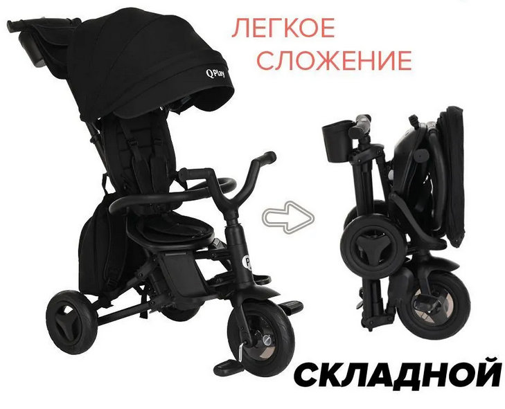 Велосипед трёхколесный с ручкой NOVA (колеса EVA 8.5"/7.5" складной) черный (арт.S700-15-Black)