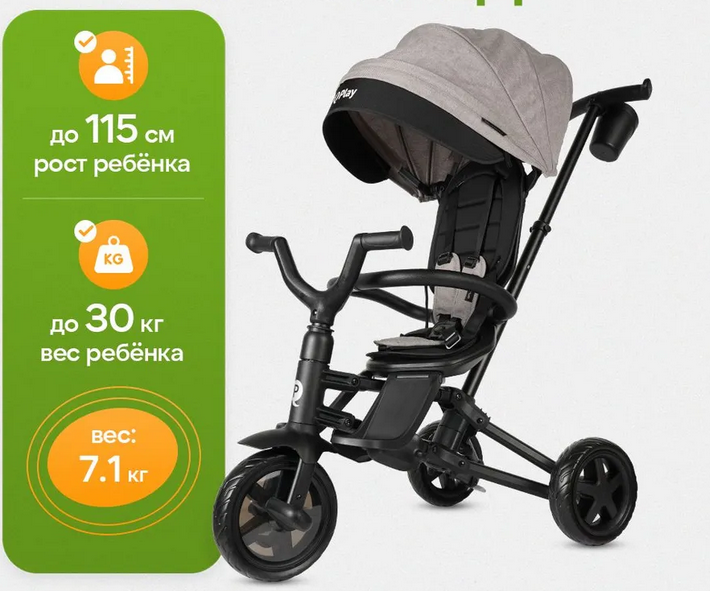 Велосипед трёхколесный с ручкой NOVA (колеса EVA 8.5"/7.5" складной) серый (арт.S700-13-Grey)