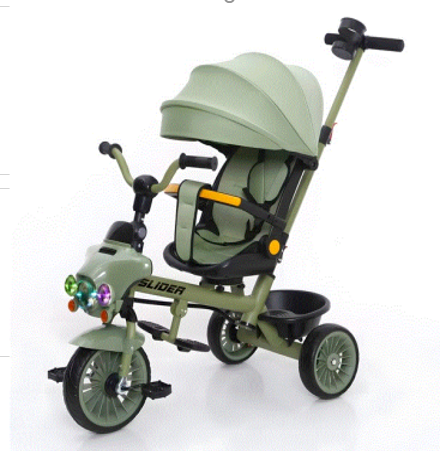 IT130G(1) Велосипед трехколесн. Slider с руч. управ., со светом и звуком, цв. зеленый, пластик. колеса 10 и 8