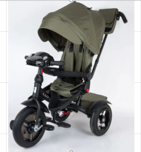 NN013421 Велосипед Luxury,над.кол.12/10",поворотн.сиден, музык.блок,функция свободн.колеса,сумка, хаки 1/1