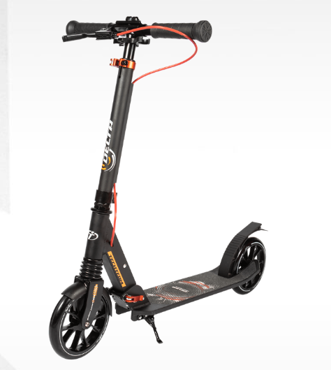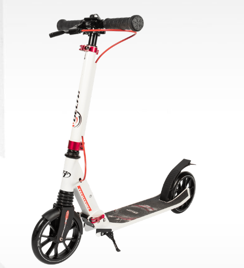 Этот самокат - "младший брат" популярнейшего City Scooter. Скутер оснащен передним амортизатором, позволяющим сглаживать неровности дороги и делает катание более комфортным.