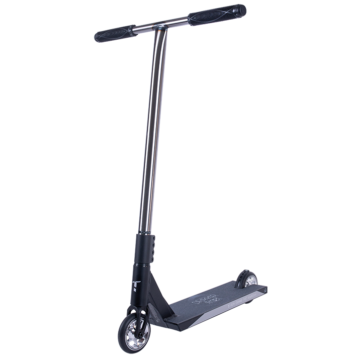 Передняя часть деки заварена, сзади установлены алюминиевые декенды, на нижней части дека имеет вырез. Шея деки унаследована с одной из наших популярных парковых моделей Drop, а если точнее - то Drop 2.0. Стакан прямой, под интегрированную рулевую. Тормоз пластиковый, со стальной пластиной внутри.
