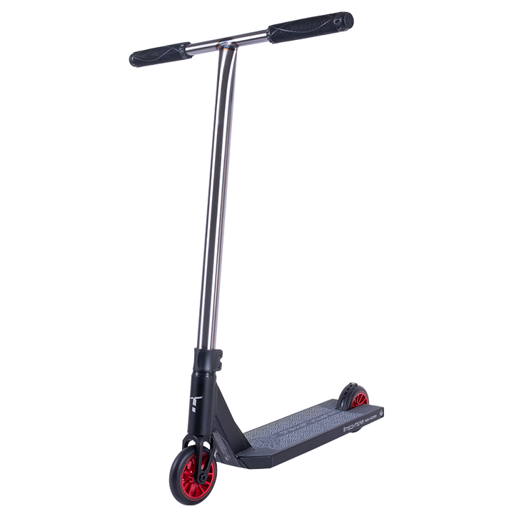 Передняя часть деки заварена, сзади установлены алюминиевые декенды, на нижней части дека имеет вырез. Шея деки унаследована с одной из наших популярных парковых моделей Drop, а если точнее - то Drop 2.0. Стакан прямой, под интегрированную рулевую. Тормоз пластиковый, со стальной пластиной внутри.