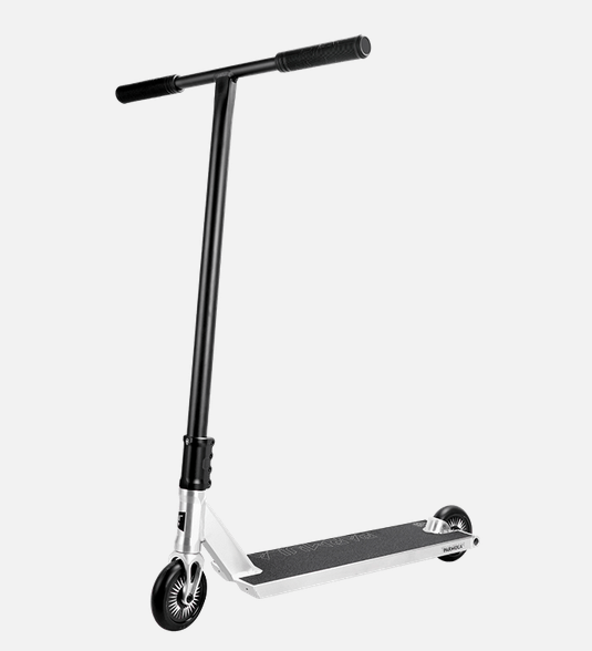 "T" - образный руль самоката изготовлен из сплава 6061-T6. Это существенно облегчает самокат и при этом обеспечивает прочность, достаточную для нагрузок, возникающих при выполнении трюков. Диаметр руля 34,9 мм. Соединяется с декой самой прочной компрессией SCS и фиксируется четырехболтовым зажимом на "шестых" болтах. В новом зажиме нижняя часть заменяет крышку рулевой. Высота руля от нижней части зажима 73 см, ширина 58 см. Мягкие резиновые грипсы с отметками, позволяющими обрезать их со 170 до 160 или 150 мм.
