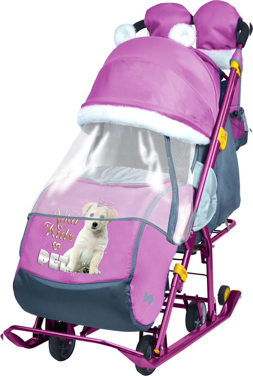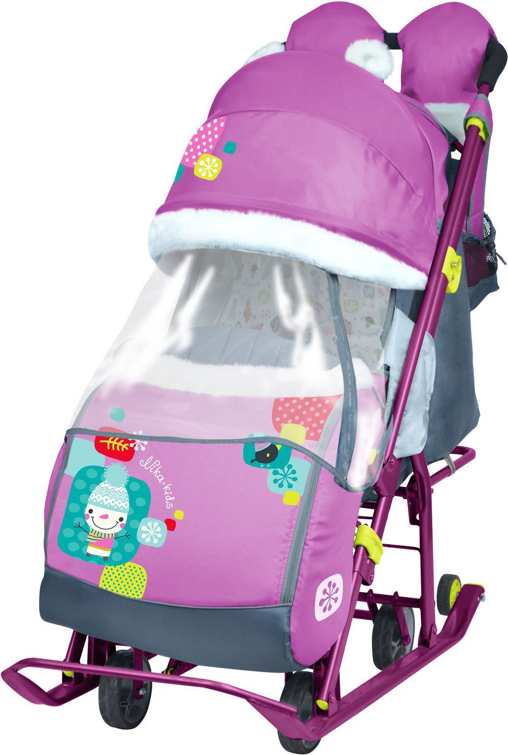 Коляска комбинированная с трансформируемым кузовом позволяет передвигаться по любой дороге. Нажатием ноги на педаль опускаются колеса, и вы можете везти коляску по асфальту или по гладкому полу. Еще одно нажатие — коляска трансформируется в санки и снова скользить по снегу! Крыша, чехол для ножек и ушки на крыше отделаны мехом, на ручку коляски надеваются меховые рукавички для мамы. Яркие детские рисунки на чехле для ног с двумя молниями.