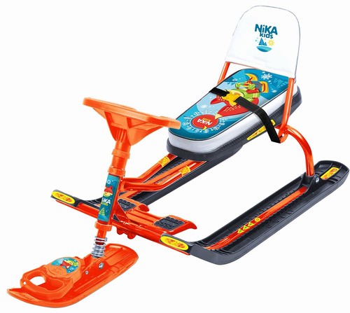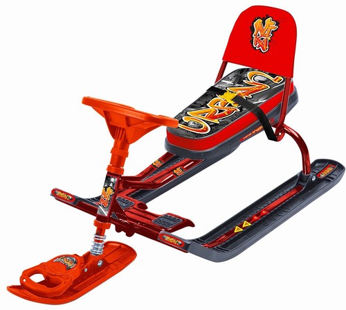 Снегокат предназначен для перевозки детей от 4 до 12 лет по плотному снегу или льду, катанию с горок. Имеет сварную конструкцию из стальных труб, пластиковых элементов и мягкое сиденье, обтянутое искусственной кожей с рисунком . Буксировочный трос с автоматической намоткой. Усиленный тормоз эффективен на обледенелой поверхности. Спинка съемная складная. Комплект наклеек на снегокат в подарок!