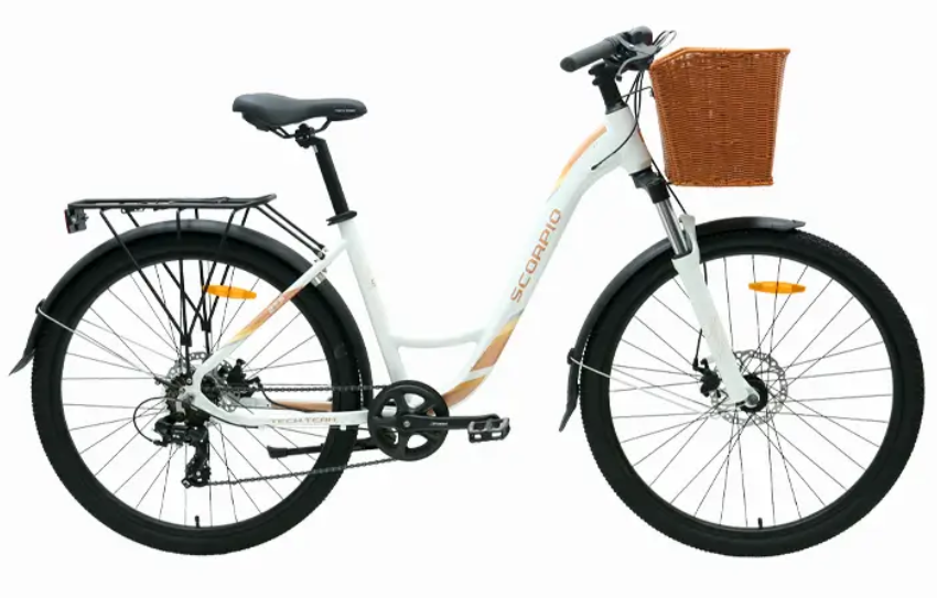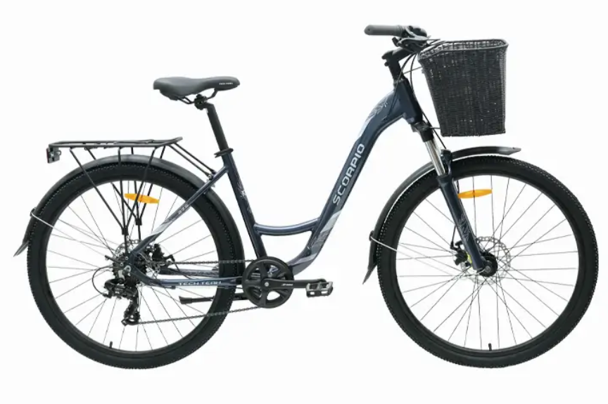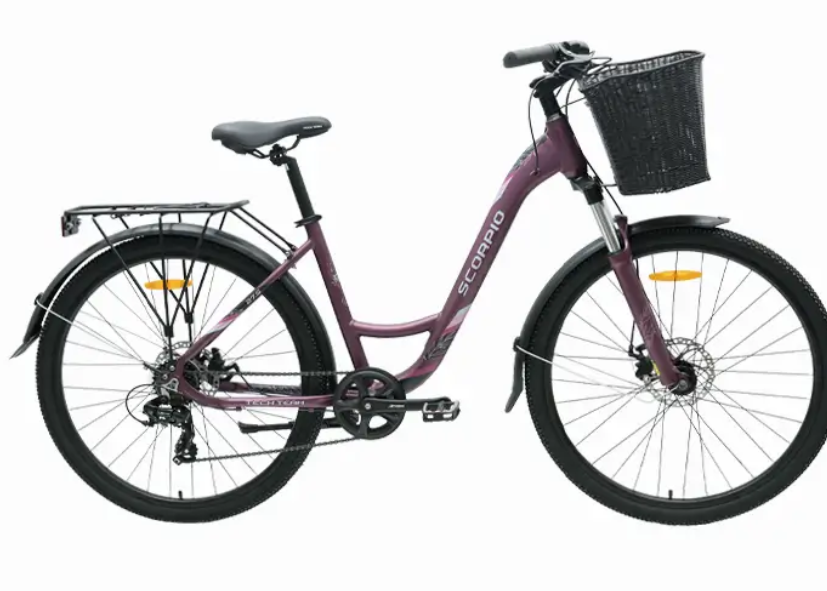 Велосипед Scorpio коллекции 2025 года в обновленном дизайне. Мы доработали корзины и их фиксацию, теперь они стали более надежными и красивыми. Кроме того, снижен вес благодаря замене вилки на полностью алюминиевую.