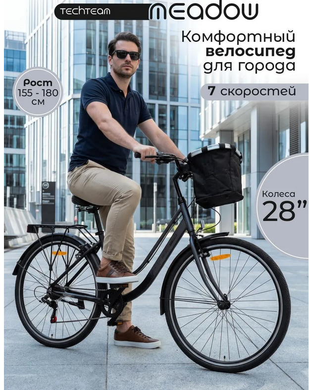 NN015435 Велосипед городской Meadow 28",чёрно/серый,17,AL рама,7 скор,багажник,корзина